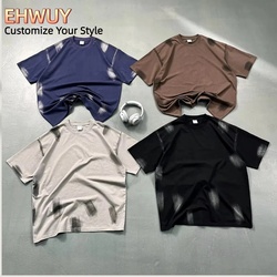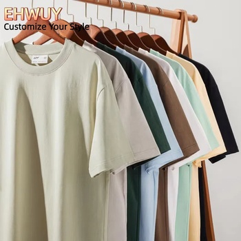 EHWUY T-shirt en coton 100% épais et surdimensionné pour homme 280GSM avec logo personnalisé Chemise en tricot imprimée épaisse et ample populaire