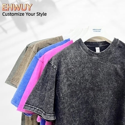 Ehwuy Áo thun cổ thuyền có gân cotton 100% thường ngày cho nam áo thun ngoại cỡ 300gsm giặt axit Chất lượng cao tùy chỉnh trang phục dạo phố màu trơn cho nam