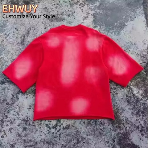 Ehwuy 2024 Tùy Chỉnh Màn Hình In Áo Thun 100% Cotton Thiết Kế Mới Quá Khổ Cắt Khoáng Rửa Sạch Jersey Giản Dị Thư Mô Hình