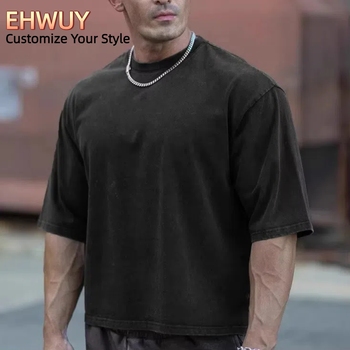 Ehwuy Tùy Chỉnh 100% Cotton T-Shirt Trọng Lượng Nặng Quá Khổ Phong Cách Giản Dị Cho Nam Giới Với Thiết Kế Trống In Kỹ Thuật Số